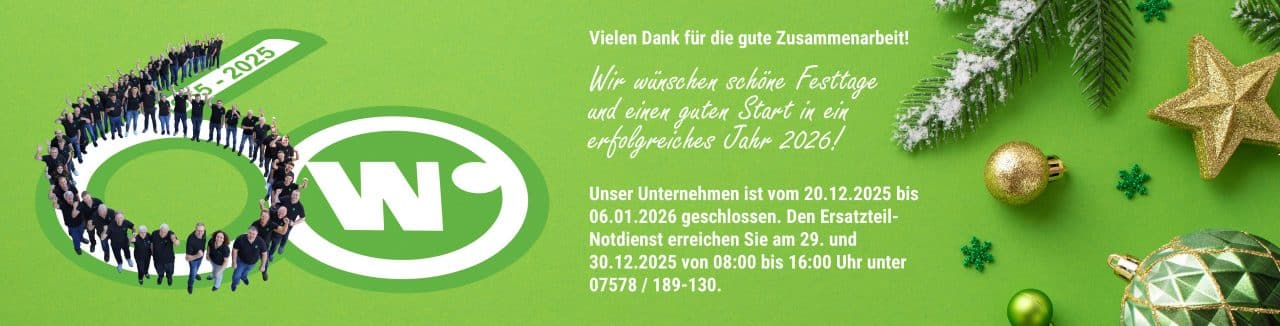 Bitte beachten Sie unser Unternehmen ist in der Zeit vom 20.12.2025 bis zum 06.01.2026 geschlossen. Den Ersatzteil-Notdienst erreichen Sie am 29.& 30.12.25 von 8.00 bis 16.00 Uhr unter +49 7578 189-130.